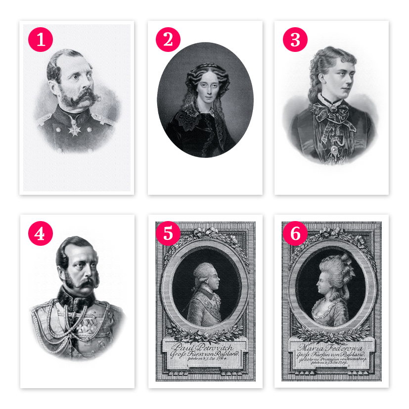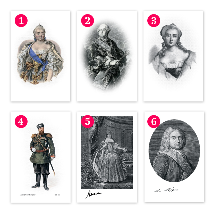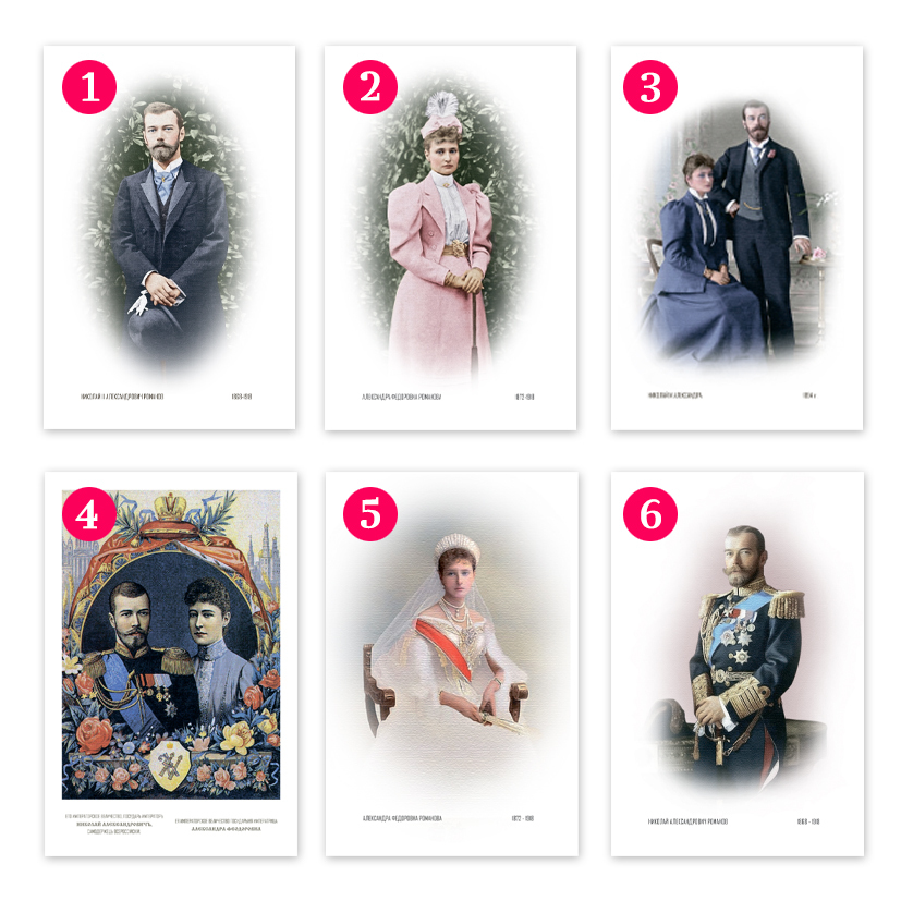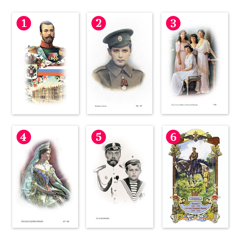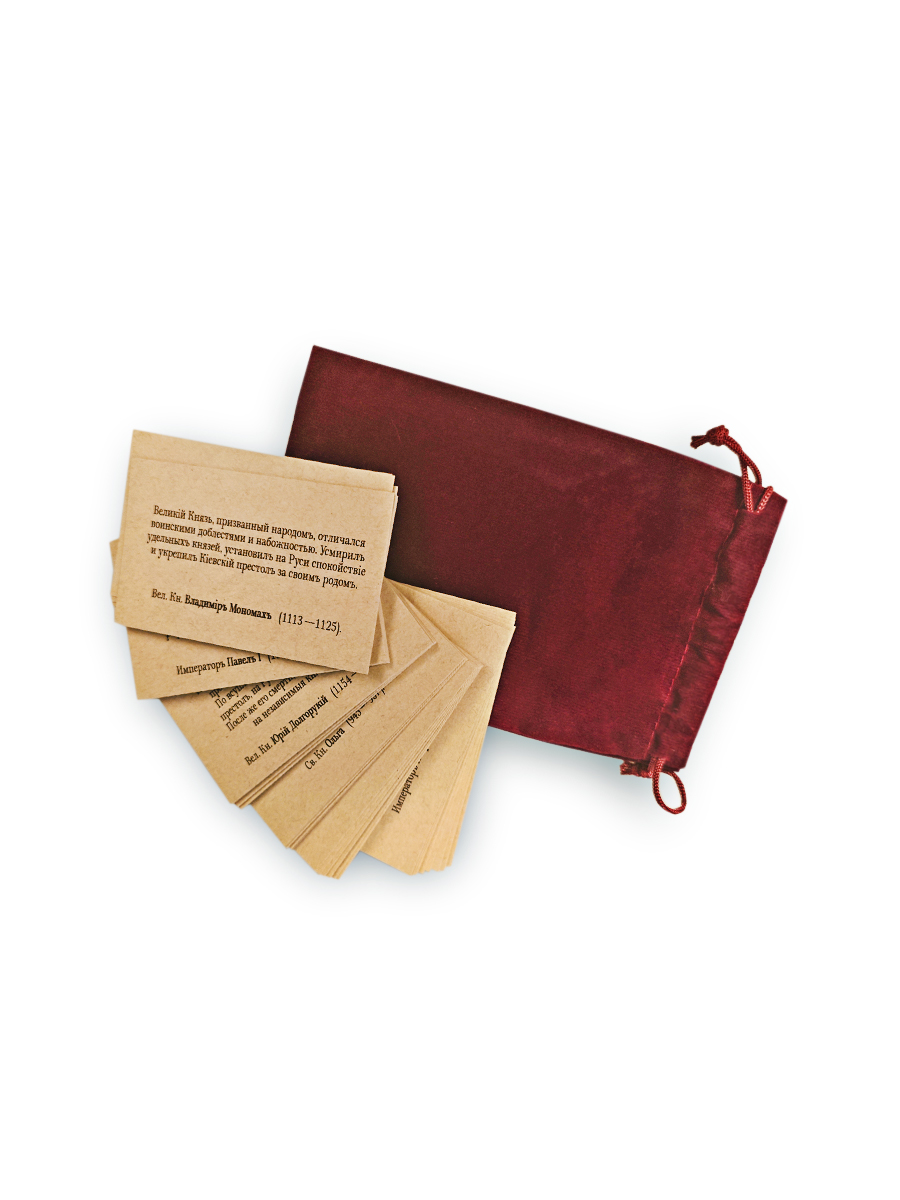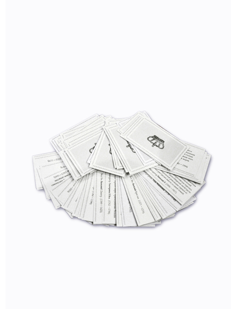 12 карт с изображением 55-ти Российских Государей, начиная от Рюрика (862 – 879 г.г.) и заканчивая Николаем II (1894 – 1917г.г.)