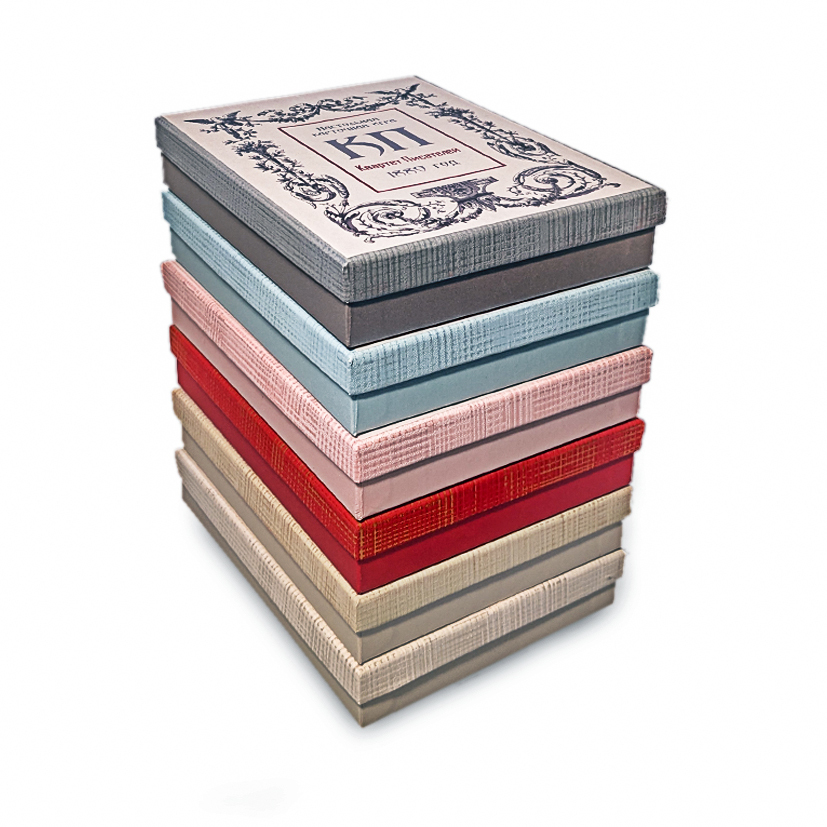 Настольная игра «Квартет писателей» была издана в 1880 год и пользовалась популярностью долгие годы сначала при императорском дворе, затем у столичного и бравшего с него пример провинциального дворянства. В игральной колоде присутствуют по четыре карты знаменитых русских писателей и поэтов того времени с годами их жизни и названиями их четырех основных произведений, всего 34 «квартета» (134 шт.).Так же в комплект игры входит картонная коробочка для хранения и правила игры. Смысл игры заключается в необходимости собрать как можно большее количество «квартетов». Количество игроков - от 2-х и более..