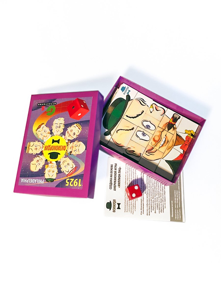 Игра “ФИЗИОМОРДИЯ” создана на основе игры “Миллион лиц”, созданной в Филадельфии (США) в 1925 году. Игра состоит из 88-ми деревянных блоков (пазлов), позволяющих собирать миллионами способов смешные физиономии джентльменов. Для того, чтобы игра приобрела соревновательный характер и в нее можно было бы играть компанией, мы добавили деревянный игральный кубик и установили правила, описание которых входят в комплект. В игру можно играть от 1 до 8 человек. Возраст не ограничен… от 4-х до 120.. Соберите себе своего Джентльмена и получите хорошее настроение!